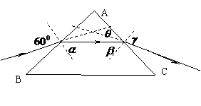 的入射角从AB侧面的中点射入,折射后再从AC侧面射出,出射光线偏离入射光线的角度为