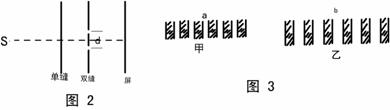 17.如图2是双缝干涉实验装置示意图。图3是用红光和紫光在同一装置做实验得到的干涉图样,a、b分别表示中央明条纹。回答下列问题: