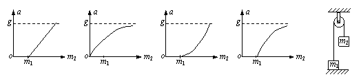 m2离地面有一定高度。当m2的质量发生改变时,m1的加速度a的大小也将随之改变。以下左面的四个图象,哪个最能正确反映a与m2间的关系
