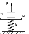 (14分)一弹簧秤秤盘的质量M=1.5kg,盘内放一个质量m=10.5kg的物体P,弹簧质量忽略不计,轻弹簧的劲度系数k=800N/m,系统原来处于静止状态,如图所示。现给物体P施加一竖直向上的拉力F,使P由静止开