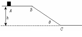 (16分)如图所示,一高度为h=0.8m粗糙的水平面在B点处与一倾角为θ=30°光滑的斜面BC连接,一小滑块从水平面上的A点以v0=3m/s的速度在粗糙的水平面上向右运动。运动到B点时小滑块恰能沿光滑斜面下滑。已知AB间的距离s=5m,求: