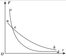 A.ab为斥力曲线,cd为引力曲线,e点横坐标的数量级为10-10m