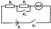 ②已知R1=140Ω,R2=60Ω。当电键K1闭合、K2断开时,电流表读数为6.0mA;