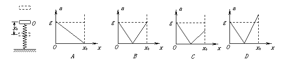 3.如图所示,一根轻弹簧竖直直立在水平地面上,下端固定,在弹簧的正上方有一个物块,物块从高处自由下落到弹簧上端O,将弹簧压缩,弹簧被压缩了x0时,物块的速度变为零,从物块与弹簧接触开始,物块的加速度的大小随下降的位移x变化的图象可能是