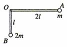 25.一质量不计的直角形支架两端分别连接质量为m和2m的小球A和B。支架的两直角边 长度分别为2l和l,支架可绕固定轴O在竖直平面内摩擦转动,如图所示。开始时OA 边处于水平位置,由静止释放,则