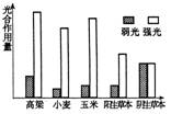 1.在适宜的温度、水分和CO2条件下,分别测定强光和弱光时不同植物的净光合作用量