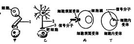传导方式,丙、丁表示不同的信号分子对靶细胞作用的方式。下列说法正确的是