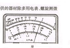 (2)(12分)在实验室内测定金属电阻率的实验中,提供的器材除多用电表、螺旋测微器、米尺、开关和若干导线外,还有: