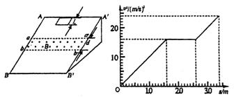 25.(20分)一个质量m=0.1 kg的正方形金属框R=O.sΩ,金属框放在表面绝缘且光滑的斜面顶端(金属框上边与AA′重合),自静止开始沿斜面下滑,下滑过程中穿过一段边界与斜面底边BB′平行、宽度为d的匀强磁场后滑至斜面底端(金属框下边与BB′重合),设金属框在下滑过程中的速度为v,与此对应的位移为s,那么v2-s图象如图所示,已知匀强磁场方向垂直斜面向上.试问: