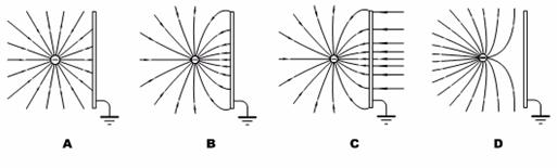 5.把一个带负电的球放在一块接地的金属板附近,对于球和金属板周围形成电场的电场线,下图中描绘正确的是: