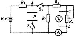 10.如图所示,电源电动势为E,内阻为r,电流表、电压表均为理想电表,S1、S2均闭合时,平行金属板中带电质点P恰处于静止状态,则