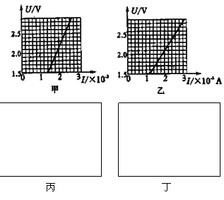 ⑵在图丙、丁的线框中分别画出甲、乙两位同学所用的测量电路,并由测量结果判定