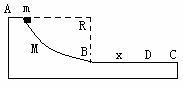 6、如图所示,质量为M的滑块静止于光滑水平面上,滑块上AB部分是半径为R的1/4光滑圆弧,BC部分是粗糙的水平面,今把质量为m的小物体从A点由静止释放,M与BC部分间动摩擦因数为µ,最终小物体与滑块相对静止于B、C间的D点,则B、D间距离x随各量变化情况
