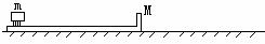 18、(16分)如图所示,质量为M=4kg的木板静置于足够大的水平地面上,木板与地面间的动摩擦因数m=0.01,板上最左端停放着质量为m=1kg可视为质点的电动小车,车与木板上的挡板相距L=5m。车由静止开始从木板左端向右做匀加速运动,经时间t=2s,车与挡板相碰,碰撞时间极短且碰后电动机的电源切断,车与挡板粘合在一起,求碰后木板在水平地面上滑动的距离。