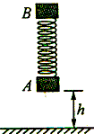 19、(16分) 如图所示,质量均为m的物块A和B用弹簧连结起来,将它们悬于空中静止,弹簧处于原长状态,A距地面高度h=0.90m.同时释放两物块,A与地面碰撞后速度立即变为零,由于B的反弹,A刚好能离开地面.若将B物块换为质量为2m的物块C(图中未画出),仍将它们悬于空中静止且弹簧为原长,从A距地面高度为h′处同时释放,A也刚好能离开地面.已知弹簧的弹性势能Ep与弹簧的劲度系数k和形变量x的关系是: