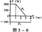 9.某物体同时受到两个在同一直线上的力Fl、F2的作用,物体由静止开始做直线运动,其位移与力Fl、F2的关系图像如图5-6所示,在这4m内,物体具有最大动能时的位移是 ( )