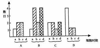下图A、B、C、D分别表示某哺乳动物细胞(2n)进行减数分裂的不同时期,其中a表示细胞数目。请判断b、c、d依次代表( )