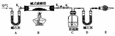 Mg5(OH)2(CO3)4等。某研究性学习小组的同学们为了确定某碱式碳酸镁的组成,设下图所示的实验装置。