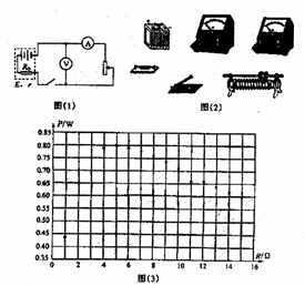 (2)(12分)电源的输出功率只跟外电路的电阻R有关,如图(1)所示是研究它们关系的实验电路为了便于进行实验和保护蓄电池,给蓄电池串联了一个定值电阻R0,把它们一起看作一个等效电源(图中虚线框内部分),于是等效电源的内电阻就是蓄电池的内电阻和定值电阻R0之和,用r表示,等效电源的电动势用E表示。