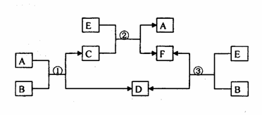 (12分)A、B、C、D、E、F六种物质在一定条件下有如图所示的相互转化关系,所有反应和生成物均已给出。