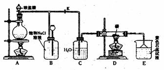 (5)D处反应完毕后,关闭旋塞K,移去酒精灯,由于余热的作用,A处仍有少量Cl2产生,此是B中的现象是________________,B的作用是________________________。