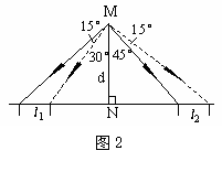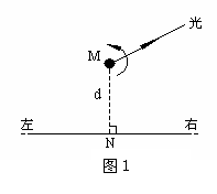 例1.(2000年全国高考)一辆实验小车可沿水平地面(图中纸面)上的长直轨道匀速向右运动。有一台发出细光束的激光器装在小转台M上,到轨道的距离MN为