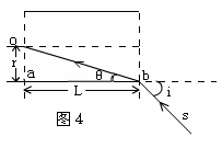 解析:光路如图4:根据题干中的说明,该玻璃圆柱体是嵌在门上的,圆柱体的轴垂直门面,门内的人通过玻璃圆柱底面中心点观察门外的景物,显然人眼能观察到的是一个圆形区域,视场角就是从圆形区域的边缘发出的且能通过玻璃圆柱由底面中心O点射出进入人眼的入射光线sb,与玻璃圆柱的轴线,亦即圆柱底面的法线的夹角θ,如图4与入射光线sb对应的折射光线是bo,折射角