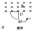 如图甲中的虚线上方空间有垂直线框平面的匀强磁场,直角扇形