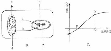 。当光照强度为N时,在甲图中存在的过程有(用字母表示) 。在此时,该植物的叶肉细胞中能产生ATP的细胞器是 。