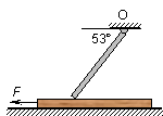 10.如图,质量m = 1 kg的匀质木杆,上端可绕固定水平轴O转动,下端搁在质量M = 5 kg木板上,木板置于光滑水平地板上,杆与水平方向成53 角。杆与木板间的滑动摩擦因素m = 0.5,用F = 15N的水平力拉木板,木板对杆的支持力大小为__________N,木板获得的加速度大小为________m/s2。(sin 53 = 0.8 )