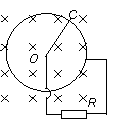 图示装置,半径为r的圆形导体框架放在磁感应强度为B的匀强磁场中,导体棒OC可绕圆心O在框架上转动,棒端O与框架连接电阻R(其它电阻不计)。在外力作用下,棒以角速度w 匀角速转动,则通过电阻的电流为___________;外力的功率为__________。
