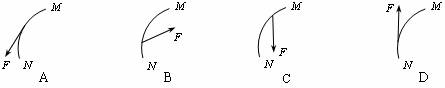 2.一辆汽车在水平公路上转弯,沿曲线由M向N行驶,速度逐渐减小.如图所示,分别画出了汽车转弯时所受合力的四种方向,你认为正确的是