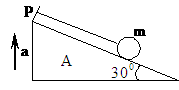 (8分)在升降机地面上固定着一个倾角α=300的光滑斜面,用一条平行于斜面的细绳拴住一个质量m=2kg的小球,如图所示,当升降机以加速度a=2m/s2竖直向上匀加速运动时,绳子对球的拉力和小球对斜面的压力分别为多少?(g=10m/s2)