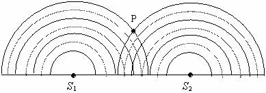 3.如图所示,S1、S2为水波槽中的两个波源,它们分别激起两列水波,图中实线表示波峰、虚线表示波谷。已知两列波的波长λ1<λ2,该时刻在P点为两列波的波峰与波峰相遇,则以下叙述正确的是