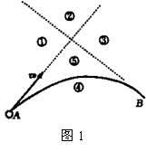 一个物体以初速度v0从A点开始在光滑水平面上运动,一个水平力作用在物体上,物体的运动轨迹如图1中的实线所示,图中B为轨迹上的一点,虚线是过A、B两点并与轨迹相切的直线,虚线和实线将水平面划分5个区域,则关于施力物体的位置,下面说法正确的是( )