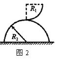 4.如图2,从光滑的1/4圆弧槽的最高点滑下的小物块,滑出槽口时速度为水平方向,槽口与一个半球顶点相切,半球底面为水平,若要使小物块滑出槽口后不沿半球面下滑,已知圆弧轨道的半径为R1,半球的半径为R2,则R1与R2的关系为( )