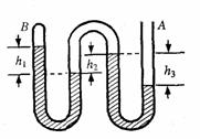 8、如图所示,竖直放置的弯曲管A端开口,B端封闭,密度为ρ的液体将两段空气封闭在管内,管内液面高度差分别为h1、h2和h3,则B端气体的压强为(已知大气压强为P0)