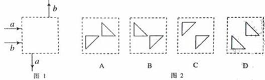 10、空气中两条光线 a和 b从方框左侧入射,分别从方框下方和上方射出,其框外光线如图 1所示。方框内有两个折射率 n=1.5的玻璃全反射棱镜。图 2给出了两棱镜四种放