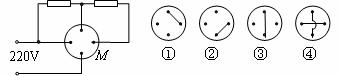 一只电熨斗,内部电路如下左图所示,其中M是调温旋钮的内部接线端子。旋钮上分别标有“高”、“中”、“低”、“关”四档。每档对应下右图中的一种接线端子的接线方法。下列判断正 确的是(