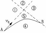 从A点开始进入某一点电荷的电场,在电场力的作用下,电子运动轨迹AB为图中实线所示,虚线是过A、B两点并与该轨迹相切的直线,虚线和实线将水平面划分为图示的5个区域。则关于对该点电荷的电性及位置,下列判断正确的是( )