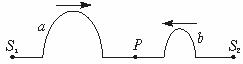 B.两a的波峰到达S2时,b的波峰还没有到达S1