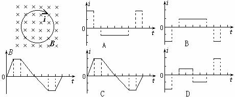 8.如图,圆环形线圈处在匀强磁场中,磁场方向与环面垂直,磁感应强度随时间变化规律如B-t图象所示。图中所标的磁场方向和感应电流方向为正方向,则下面的i-t图中正确的是( )