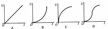 一个标有“220V 60W”的白炽灯炮,加上的电压U由零逐渐增大到220V.在此过程中,电压(U)和电流(I)的关系可用图线表示.图中给出的四个图线中,肯定不符合实际的是: