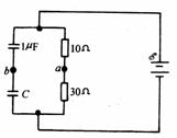 如图所示,已知a、b两点电势差为零,则电容C的值是: