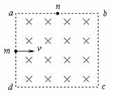 [例3](2004北京理综)如图所示,正方形区域abcd中充满匀强磁场,磁场方向垂直纸面向里。一个氢核从ad边的中点m沿着既垂直于ad边又垂直于磁场的方向,以一定速度射入磁场,正好从ab边中点n射出磁场。若将磁场的磁感应强度变为原来的2倍。其他条件不变,则这个氢核射出磁场的位置是 (答案:C )