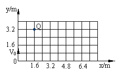 [例14]如图所示,在竖直平面内建立xOy直角坐标系,Oy表示竖直向上的方向。已知该平面内存在沿x轴负方向的区域足够大的匀强电场,现有一个带电量为2.5×10-4C的小球从坐标原点O沿y轴正方向以0.4kg.m/s的初动量竖直向上抛出,它到达的最高点位置为图中的Q点,不计空气阻力,g取10m/s2.