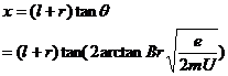 r是圆周的半径。此圆周与x轴和y轴的交点分别为P2、P3。因为OP2=OP3,θ=45°,由几何关系可知,连线P2P3为圆轨道的直径,由此可求得
