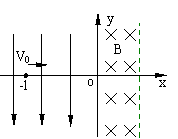 [例17]如图所示,坐标空间中有场强为E的匀强电场和磁感应强度为B的匀强磁场,y轴为两种场的分界面,图中虚线为磁场区域的右边界,现有一质量为m,电荷量为-q的带电粒子从电场中坐标位置(-l,0)处,以初速度v0,沿x轴正方向开始运动,且已知