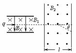 9.带电量为q的粒子(不计重力),匀速直线通过速度选择器(电场强度为E,磁感应强度为B1),又通过宽度为l,磁感应强度为B2的匀强磁场,粒子离开磁场时速度的方向跟入射方向间的偏角为θ,如图所示.试证明:入射粒子的质量m=