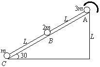 小球A、B、C用两根长为L的轻绳相连,置于倾角
